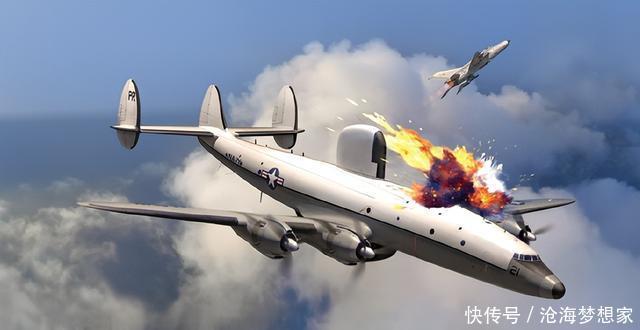 朝鲜的米格-21朝着美国EC-121M侦察机发射了空空导弹,这些空空导弹命中了美国军机的尾部,这架美国EC-121M电子侦察机先是在空中解体,然后坠毁在了大海中。